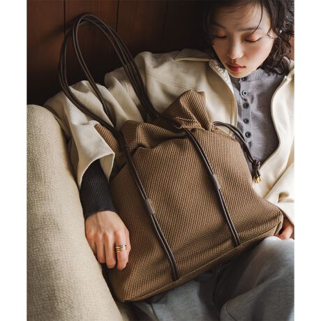 やわらかな質感と表情のある素材が魅力のドローストリングバッグ。