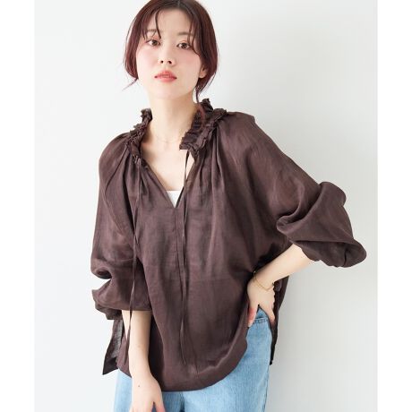 ナロースカート合わせで女性らしく上品な着こなしにも。華やかで一枚で着映える主役ブラウスです。