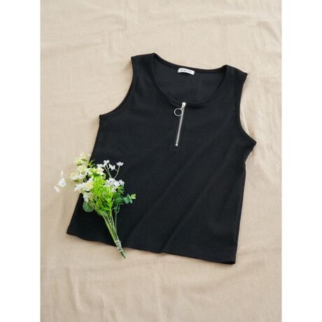 リングのハーフジップがアクセントになったタンクトップ。