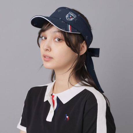 サルーキと百合の紋章を組み合わせたモノグラム刺繍が面全体に広がるリボンバイザーです。