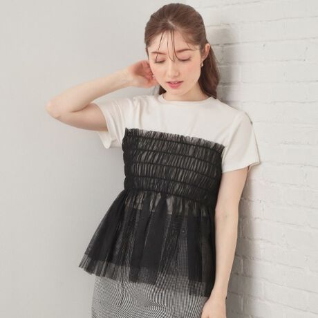 ・目面の美しいシルケットスムース素材を基調に、チュールを重ねた立体感ある仕上がり。