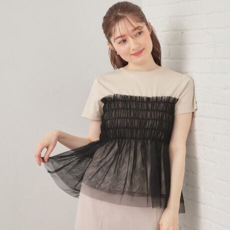 チュールペプラムトップス【洗濯機OK・接触冷感・UVケア】