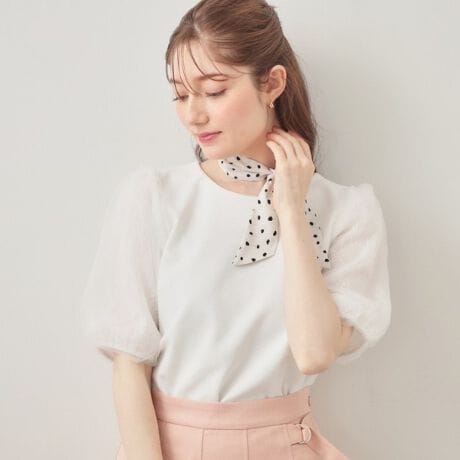 華やぎと上品さをプラス!レース×シフォンのバルーンスリーブトップス