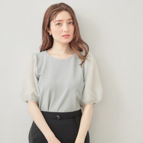 華やぎと上品さをプラス!レース×シフォンのバルーンスリーブトップス