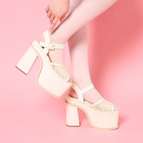 繊細な刺繍レースのシアー素材のサンダル