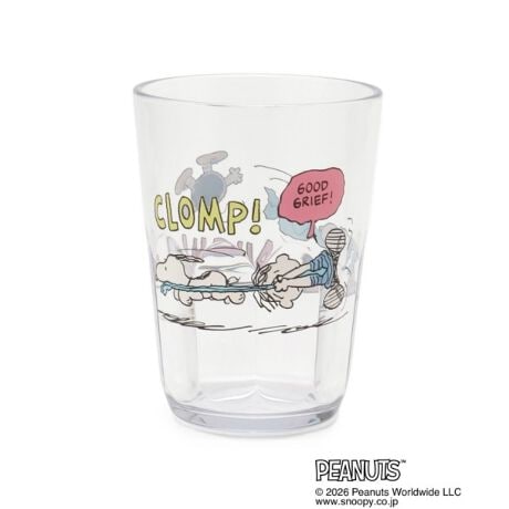 スヌーピーのアートがポップで楽しいデザインのクリアタンブラーです。