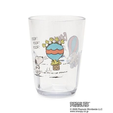スヌーピーのアートがポップで楽しいデザインのクリアタンブラーです。