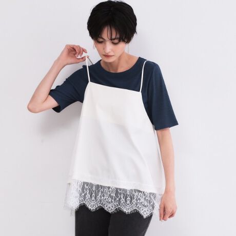 ・トレンドアイテムとしておすすめの裾レースキャミブラウス。
