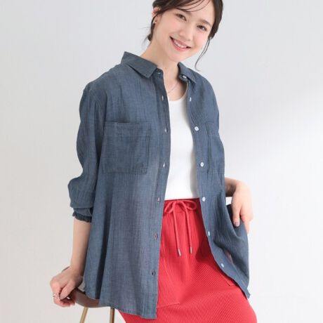 シアー感のある柔らかなデニムの素材で軽やかさが新鮮なデニムシャツ。