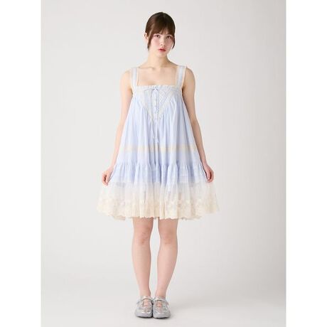 レースやピンタック、ロゴ刺繍が映えるドライタッチな綿素材のチュニック。リボン使いとティアードのボリューム感が可愛らしく、ほどよいシアー感が涼しげで柔らかな雰囲気を演出する一着です。身頃の上端は紐で身幅の調節が可能となります。タンクトップや半袖、デニムなどと合わせてスタイリングすることで今期らしく着こなしていただけます。