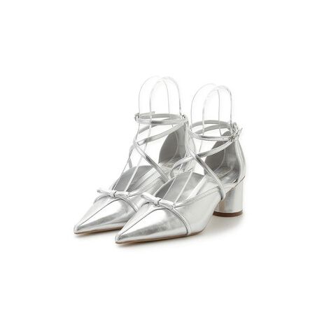 華奢で控えめなリボンパーツやクロスストラップ、浅めの甲シルエットがフェミニンな印象を押し上げるパンプス。デイリーシーン〜オケージョンシーンまで幅広く活躍するデザインです。安定感のあるヒールなので履き心地も良いアイテムです。