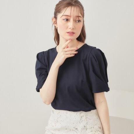シンプルながらも「一枚で着映える」タックパフスリーブトップス