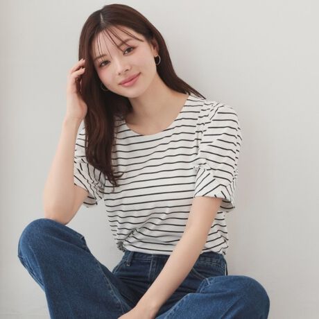 シンプルながらも「一枚で着映える」タックパフスリーブトップス