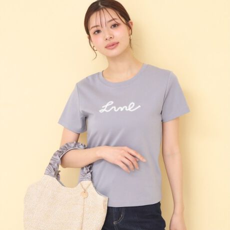 プリントにはない立体感と柔らかな光沢が、カジュアルなTシャツに上品さと大人可愛いニュアンスをプラスします。
