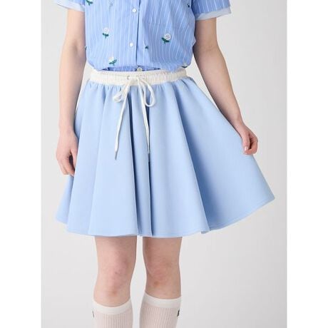 ハリ感、膨らみ感のあるダンボールニットカットソー生地を使用して、ふんだんにフレア分量をいれた華やかなシルエットのミニフレアスカートです。ボリュームはありながらも軽やかな素材なので重くなく着用いただけます。色展開がGRY、SAX、NVYとベーシックなラインアップでお作りしているので、トレンドのトラッドなコーディネート合わせと相性が良く、コンパクトなシャツやポロシャツなどのアイテムと合わせる着こなしがおすすめです。