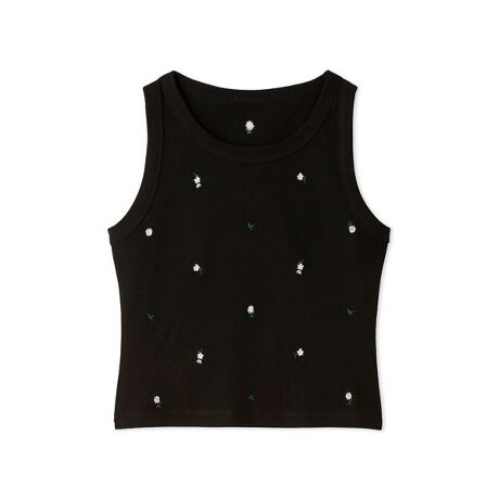 小花柄を散りばめた、シンプルながらフェミニンな印象の定番タンクトップの新作です。インナーとしても着用でき、コーディネートの幅が広がるアイテムです。