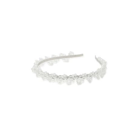 リズミカルに並んだパールの粒が目を惹くカチューシャ。 お花のモチーフに組まれたビーズの周りを、小粒のビーズが伝う独創的なデザイン。立体感のあるビーズの連なりが、お顔周りに優雅な曲線と華やかな艶めきを添えてくれます。土台には細めのラインを採用し、華奢で上品な印象に仕上げました。