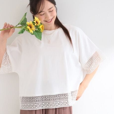 ひんやり素材の上品レース使いオーバーサイズTシャツ。