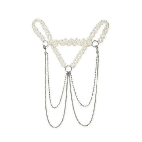 2種類のオリジナルパールレーンを贅沢に組み合わせたハーネス。 胸元を飾るのは、大粒のパールで描いたお花のモチーフの周りを、小粒のビーズが伝う独創的なパールレーン。腰回りには輝くダイヤレーンと、無骨なチェーンをドッキング。あえてメンズライクなチェーンを添えることで、パールの甘さを引き締め、洗練されたギャップを表現。普段のスタイリングにプラスするだけて、全体のシルエットに心地よい個性が宿ります。アクセサリーの枠を超えた、主役級の存在感のアイテム。