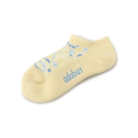 横へ流れるラインフラワーの柄が視線をリズミカルに引き上げ、さりげないフェミニンさを添えるショートソックスです。