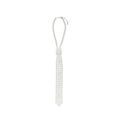 丸形ビーズを立体的に編み上げたネクタイ風のネックレスに、可憐なエッセンスを凝縮した一点。 タイの部分には、しずく型のビーズを花びらに見立てて形作ったお花を4つ配置。お花の中心にはあえて煌めくビジューをあしらい、ビーズの甘さを引き締める華やかなアクセントを添えました。マニッシュなネクタイのシルエットをビーズワークで仕上げることで、装いに心地よい意外性をプラス。Tシャツなどのラフなアイテムのカジュアルアップにおススメ。