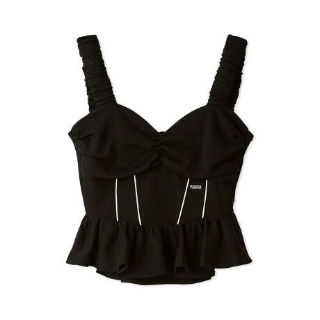スポーティな生地感にコルセットディティールを取り入れることでフェミニンなムードを掛け合わせたビスチェ。様々なボトムと合わせられるアイテムになっております。
