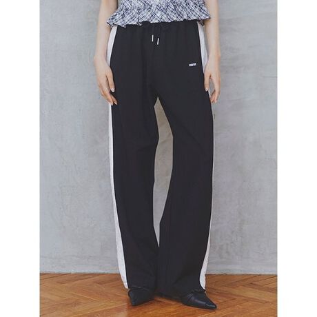 太め巾のレース生地のサイドラインが女性らしさを演出するパンツ。切り替え部分にコード入りのパイピングを挟み込み、左脇にはFURFURロゴ刺繍をあしらいました。フェミニンとスポーティな要素を掛け合わせたアイテムになっており、ストレートなシルエットでどんなコーディネートにも合わせやすいのも嬉しいポイントです。