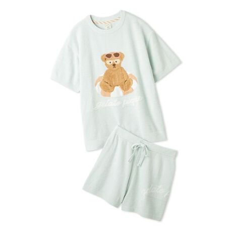 サングラス焼けしたお顔に思わず胸きゅん。夏をめいっぱい楽しむベアをテーマにした、ファミリーやカップルでお楽しみいただけるSUMMER BEARシリーズです。浮き輪でひと休みしたり、アイスを食べているベアをジャガードで大きく描いた半袖プルオーバーと、カラフルなアーチロゴ入りのショートパンツのセットアップ。柔らかな風合いの薄手ニットを使用しているので、エアコンの効いた夏のおうち時間にもちょうど良い組み合わせです。サングラスや浮き輪、ロゴのポップな配色がHAPPYな気分を演出します。色はアイスを食べているベア柄のピンクと、浮き輪に乗ったベアを描いたアイボリーとミントの全3色。HOMME、JUNIOR、KIDS、BABYとリンク・コーディネートしたり、ギフトにもおすすめです。
