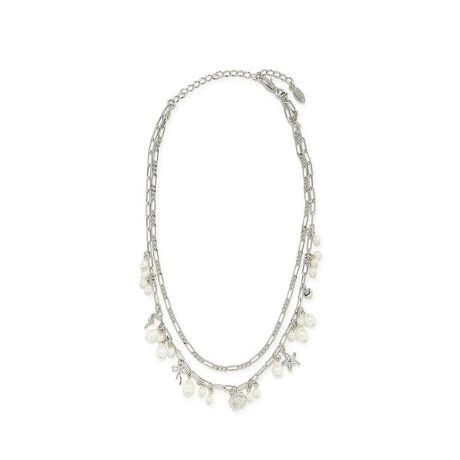様々な海のモチーフと淡水風の形状のガラスパールを下げた、二連チェーンデザインの存在感のあるネックレス。ハートやリボンなどの愛らしいモチーフも盛り込まれた、FURFURらしいデザインです。