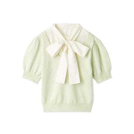 【限定カラー】ボウタイドッキングニットトップス〈マシンウォッシャブル〉