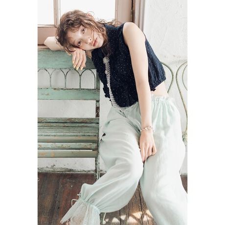 特有のシボ感とさらりとした肌触りが特徴のクレープ生地を使用したボリュームシルエットがポイントのパンツ。軽やかな透け感がありながら、裏地付きなのでインナーを気にせずご着用いただけます。裾に繊細なスカラップのレースを使用し、ウエストと裾はドロスト仕様でサイズ調節が可能です。甘めのブラウスやキャミソールなどと合わせて、トレンド感のある甘めフレンチシックなスタイリングにおすすめです。