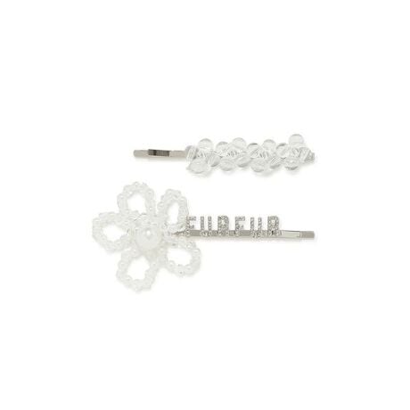 お花のモチーフを、2つの異なるアプローチで表現したヘアピンセット。 小粒のカットビーズとパールのコンビネーションで生まれた大輪のフラワーピンは、温もりとクリスタルロゴのシャープさが共存する一品。もう一方のパールピンは、整然と並ぶパールがお花のように見える、モダンな愛らしさが魅力。セットで重ね付けしてボリューム感を楽しむのはもちろん、単品使いで日常の装いにさりげない彩りをプラスするのもおすすめ。