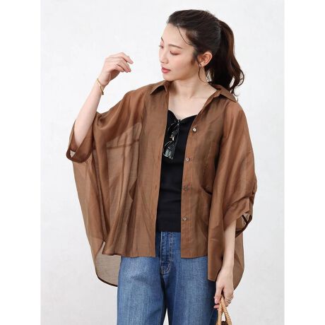 上品な透け感のシアー素材が特徴のオーバーシャツ。