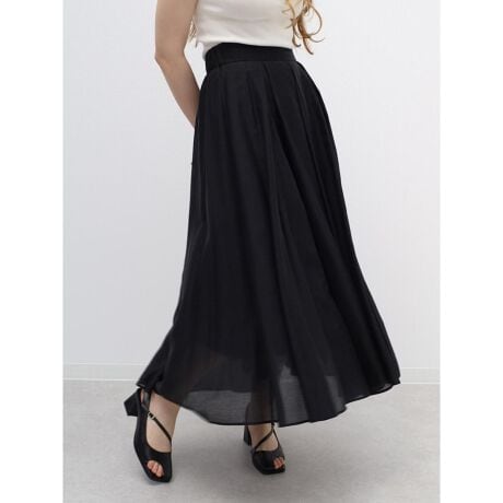 軽やかに揺れる分量たっぷりのフレアシルエットが魅力のスカート。落ち感のある素材が動きに合わせて美しく広がり、上品で女性らしい印象を演出します。ウエストはすっきりとしたタックデザインで、トップスインもきれいに決まります。カジュアルからきれいめまで幅広いスタイリングにマッチし、デイリーに活躍するアイテムです。