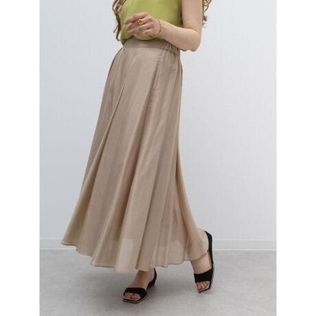 軽やかに揺れる分量たっぷりのフレアシルエットが魅力のスカート。落ち感のある素材が動きに合わせて美しく広がり、上品で女性らしい印象を演出します。ウエストはすっきりとしたタックデザインで、トップスインもきれいに決まります。カジュアルからきれいめまで幅広いスタイリングにマッチし、デイリーに活躍するアイテムです。