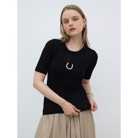 柔らかく、優しく身体にフィットするリブデザインとストレッチ性が着心地の良いカットソー。とろみのある素材感が大人らしく上品な印象に仕上がり、モードな装いにもマッチ。1枚着としてはもちろん、ジャケットやジレのインナーアイテムとしても活躍する万能アイテムです。