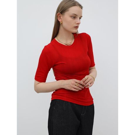 柔らかく、優しく身体にフィットするリブデザインとストレッチ性が着心地の良いカットソー。とろみのある素材感が大人らしく上品な印象に仕上がり、モードな装いにもマッチ。1枚着としてはもちろん、ジャケットやジレのインナーアイテムとしても活躍する万能アイテムです。