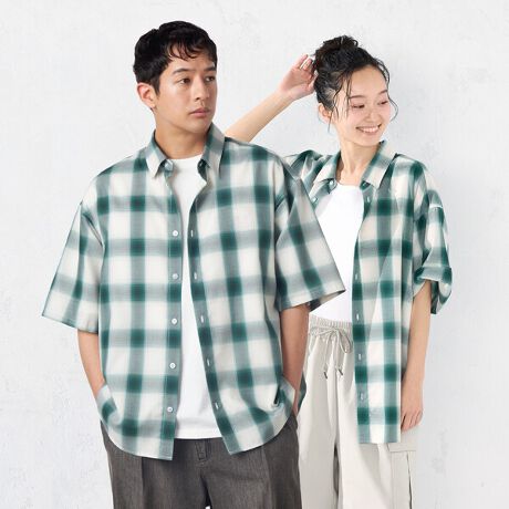 大活躍間違い無しの半袖オンブレーチェックシャツです。