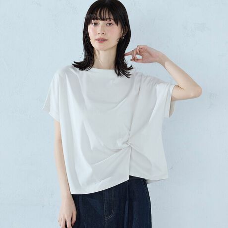 ウエストのツイストが印象的なデザインTシャツ。