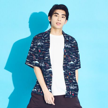 日本ならではのモチーフをアロハ柄の中に落とし込んで両国の友好を表現しました。