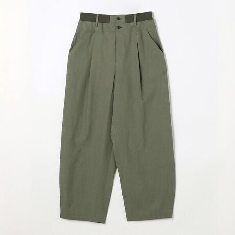 リネン特有の自然なハリを活かした、緩やかな曲線を描くバレルシルエットのパンツです。