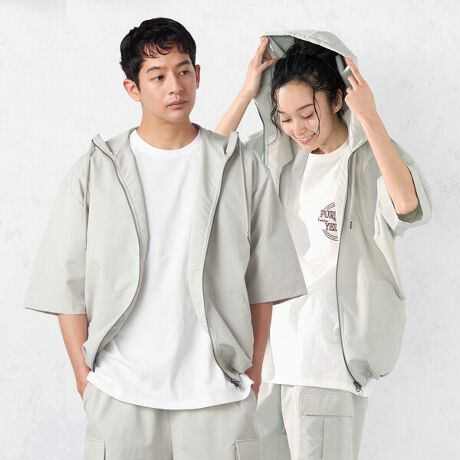 ポリエステルストレッチ素材を使用した半袖パーカです。