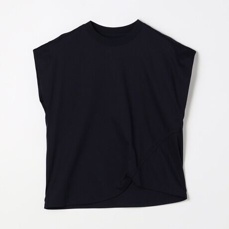 肩先までかかるノースリーブは、ショルダー部分を二重構造にすることで分量感を保ちながら、アームホールからインナーが見えにくい設計です。