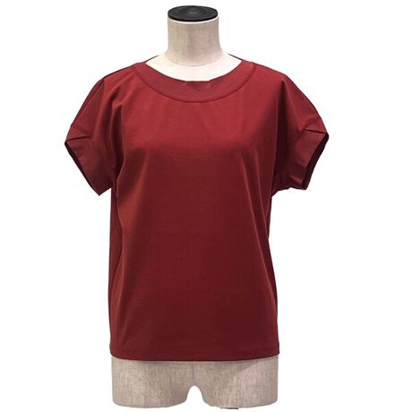 リブ切り替えのボートネックが印象的な、端正な佇まいのTシャツです。