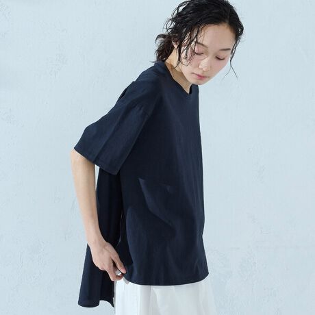 前身頃と袖は伸縮性のある天竺素材、