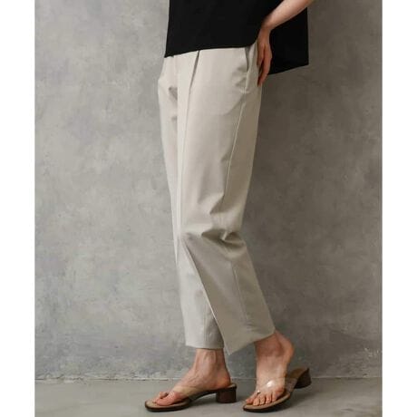 素材の落ち感とほどよいはりを活かした、テーパードシルエットのパンツ。ウエストまわりにゆとりを持たせながら、裾にかけて細くなるラインで、リラックス感がありつつすっきりとした印象に仕上げています。40サイズは限定店舗展開です。