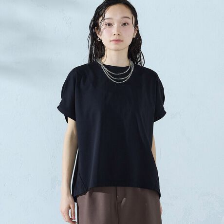 後身頃にふんだんに入ったタックがポイントのデザインTシャツ。