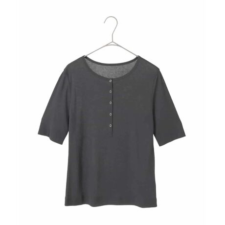 小さなリングドットがさりげないアクセントになったヘンリーネックTシャツ。すっきりとしたデザインで、一枚ではもちろん、インナーとしても着回しやすいアイテムです。シンプルながらも、スタイリングにほどよい表情をプラスしてくれます。40サイズは限定店舗展開です。