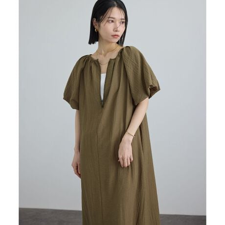 贅沢に施した衿ぐりギャザーが華やかさをプラス。