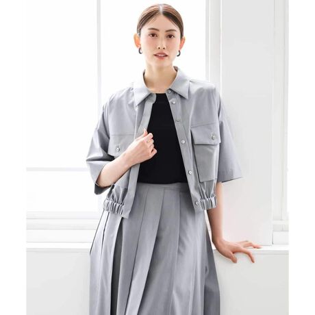 軽やかな丈感は、さらりと羽織るだけでバランス良く決まる一着。ワイドパンツやデニムと合わせたラフなスタイリングもバランスに仕上がります。裾のゴムギャザーが自然とシルエットにメリハリを生み、シンプルなコーディネートでも着映えするのがポイント。同素材のスカートと合わせたセットアップスタイルなら、統一感のある着こなしが完成します。